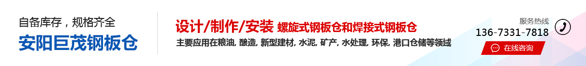 安陽(yáng)市巨茂鋼板倉(cāng)有限公司,***設(shè)計(jì)、制作、安裝,螺旋式鋼板倉(cāng)和焊接式鋼板倉(cāng),公司位于聞名世界的甲骨文發(fā)源地河南安陽(yáng),公司擁有鋼板倉(cāng)***技術(shù)人員和 研發(fā)技術(shù)人才,過(guò)硬的施工隊(duì)伍,為客戶(hù)提供成熟的鋼板倉(cāng)儲(chǔ)存解決方案,主要應(yīng)用在糧油、釀造、新型建材、水泥、礦產(chǎn)、水處理、環(huán)保、港口倉(cāng)儲(chǔ)等領(lǐng)域,公司 以良好的信譽(yù)、周到的服務(wù)得到廣大用戶(hù)的認(rèn)可,產(chǎn)品已遍布全國(guó)各地。